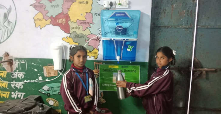 Alka Mathur, Principal Govt Upper Primary School, Arniya tells us that safe drinking water has always been a problem in this remote village in the Kota district of Rajasthan. TDS levels of water are very high ranging to more than 1000 ppm which slows the digestion process. Also, Rajasthan has high fluoride content in water which may cause weak bones and mottled enamel. She adds that temperatures in summer soar to 48 degrees which increases drinking water consumption but children carry only one water bottle from their home as they travel from far distances. Children usually skip school during summer. Alka madam was more than grateful when Samarpan installed a water purifier in her school ensuring clean drinking water to 113 children. We feel blessed when she says, “It’s the biggest human Dharma to provide drinking water to a fellow human”. She says this will ensure that no child suffers from illness due to digestive problems, bone or teeth problems, or dehydration during the summer months. The long-term impact would be reduced absenteeism from the schools. This small step would go a long way in ensuring good health and as well as increased retention of the children in schools translating into positive learning outcomes.